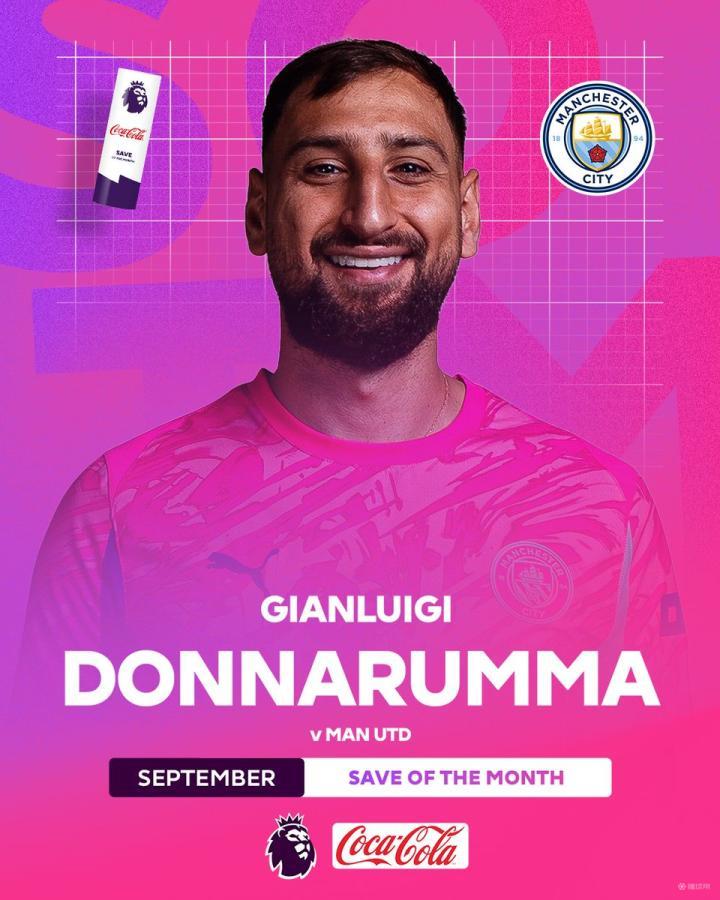 各位听众朋友们,官方传来重磅消息!曼城门将多纳鲁马在曼市德比中那记惊世骇俗的飞身单手扑救,成功斩获英超9月最佳扑救的殊荣!